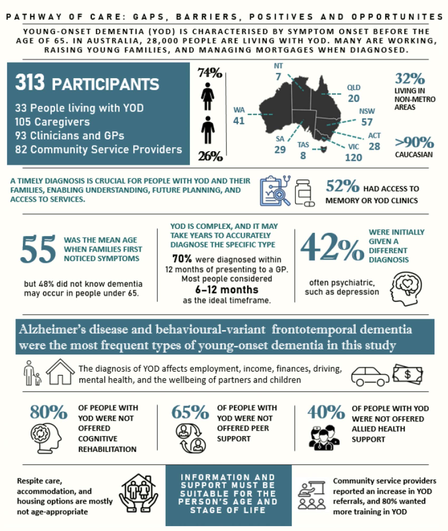 - Young onset dementia remains poorly recognised and poorly understood